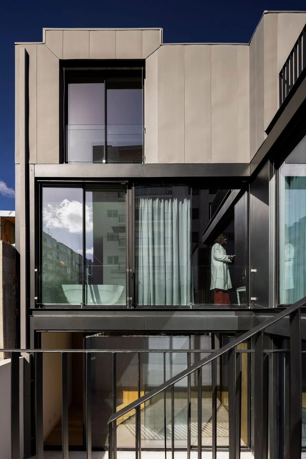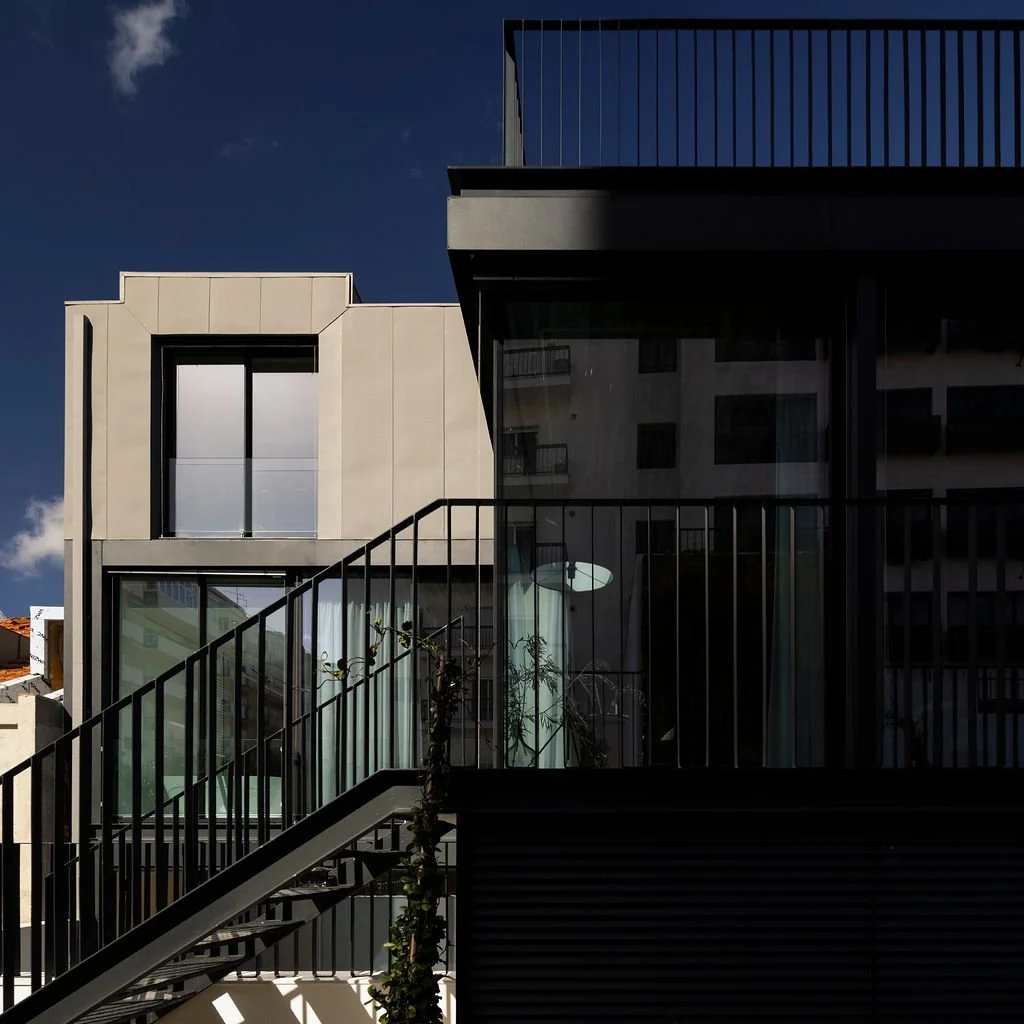 This residential building is the result of the purchase of two adjoining buildings and the submission of projects to the relevant authorities. A basement was developed for parking with seven spaces and three floors of housing with one apartment per floor, ranging in size from 165 to 220 m², all with private outdoor spaces.